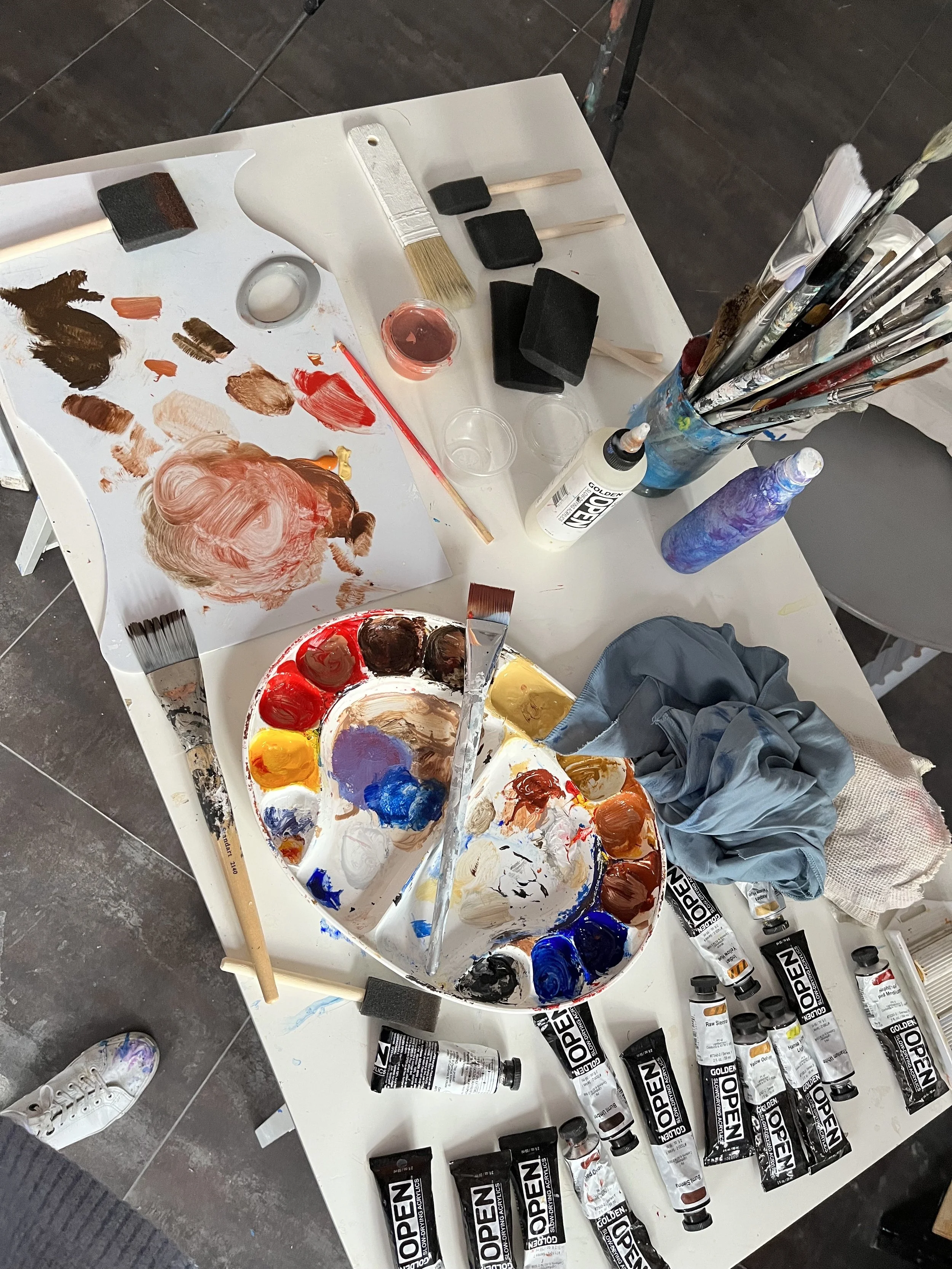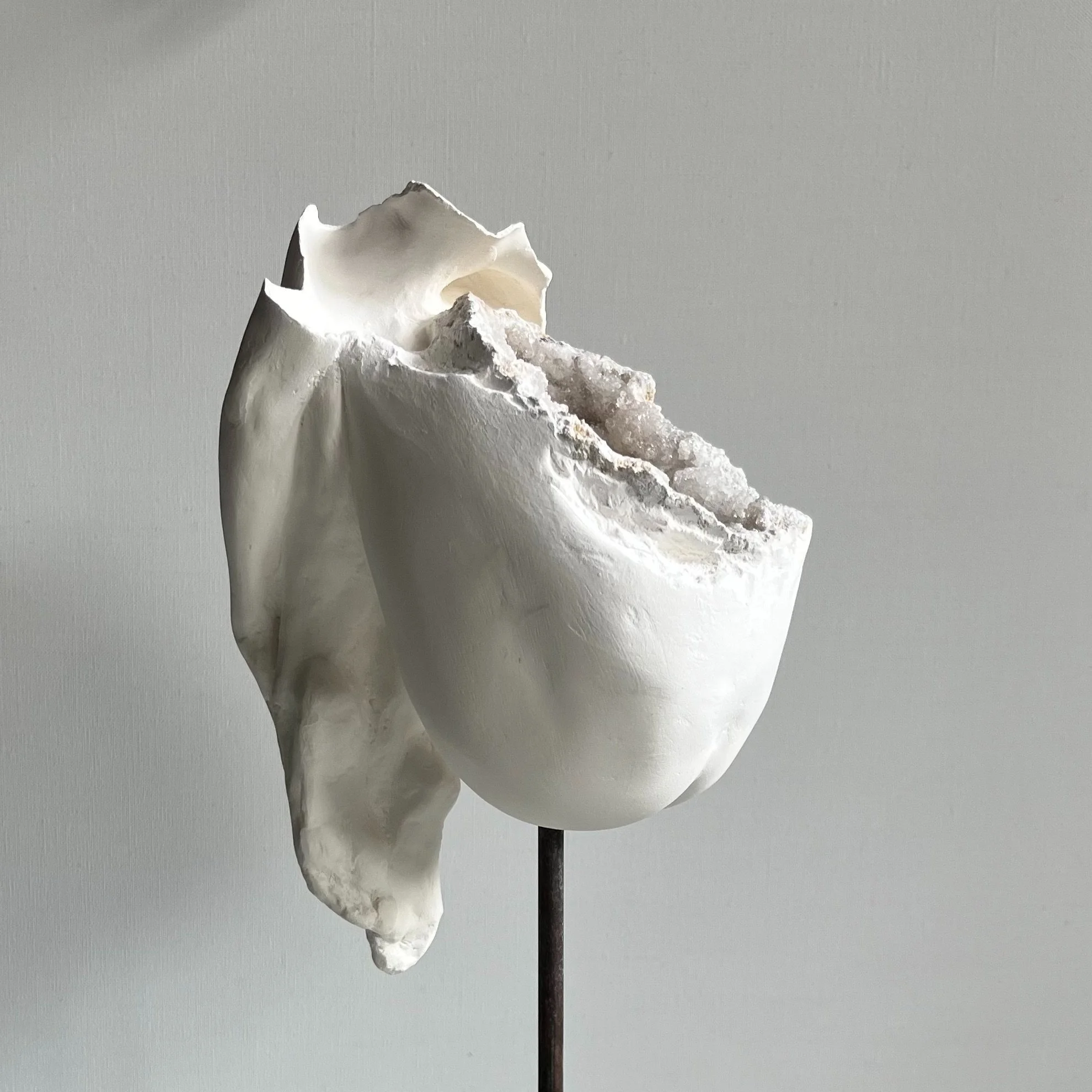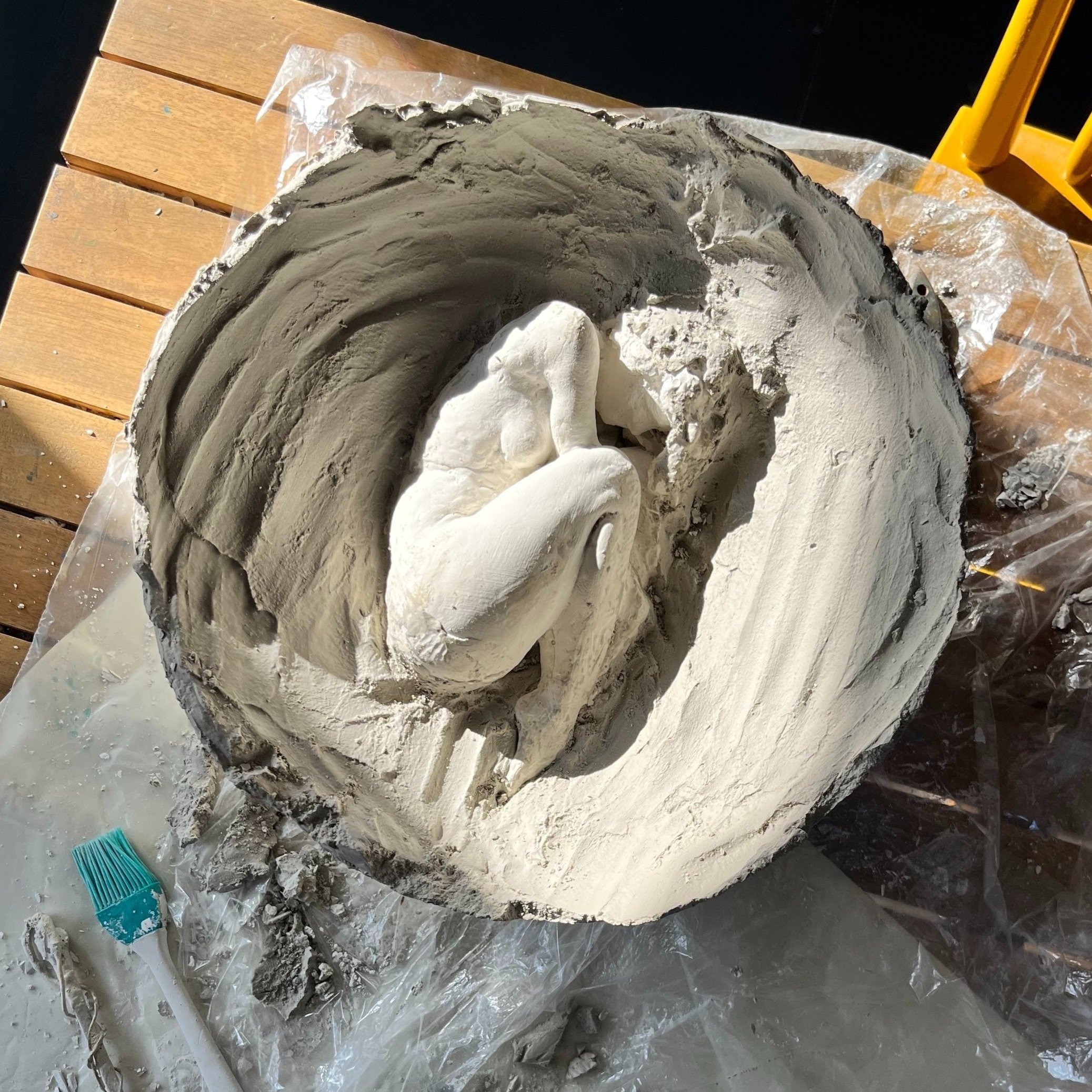 The year starts with sculptures, which I consistently create throughout, experimenting with materials like plaster, sand, stone, crystals, shells, and epoxy resin.